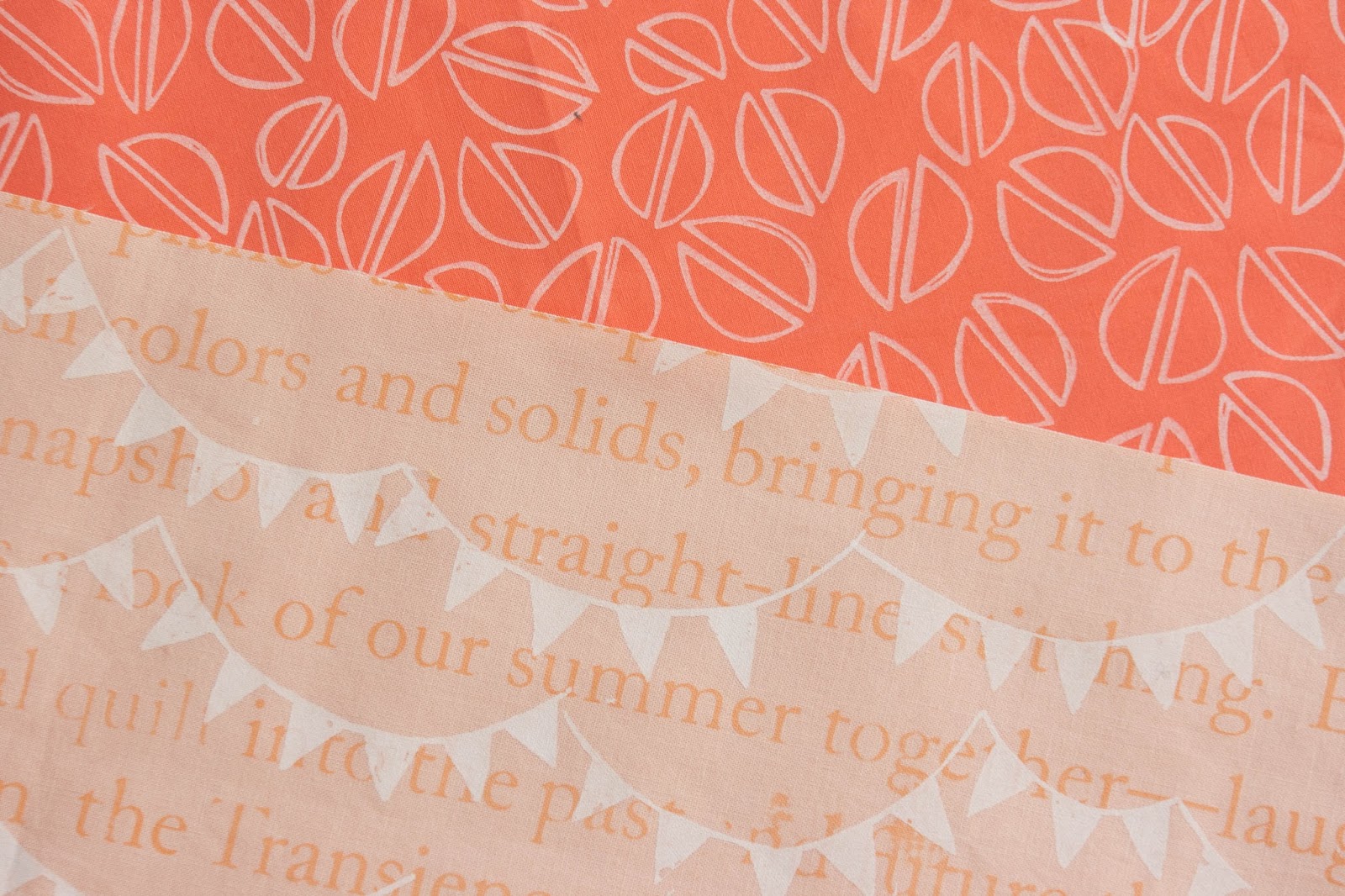Pistachios in coral, printed on Art Gallery. Bunting in peach, printed on Kona peach sherbet. ** Favorite from the bunch! **
